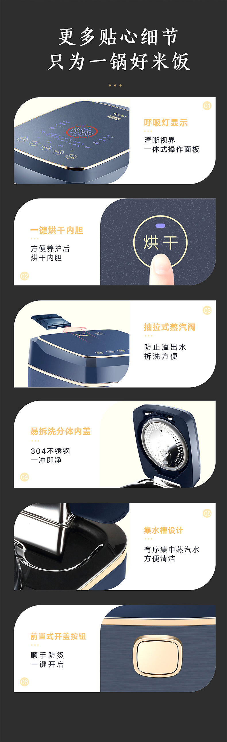铸铁无涂层内胆,安全又健康;分控多段IH立体加热,米饭受热更均匀,25KPa变压控,口感更软糯