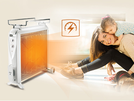 采用平行多片高能电热膜斜面排列,形成多个独特的45°黄金导热空间,有效扩大发热面积,形成更多热浪聚集和上下热对流循环,取暖效果有效提升,冬日也能暖如春。