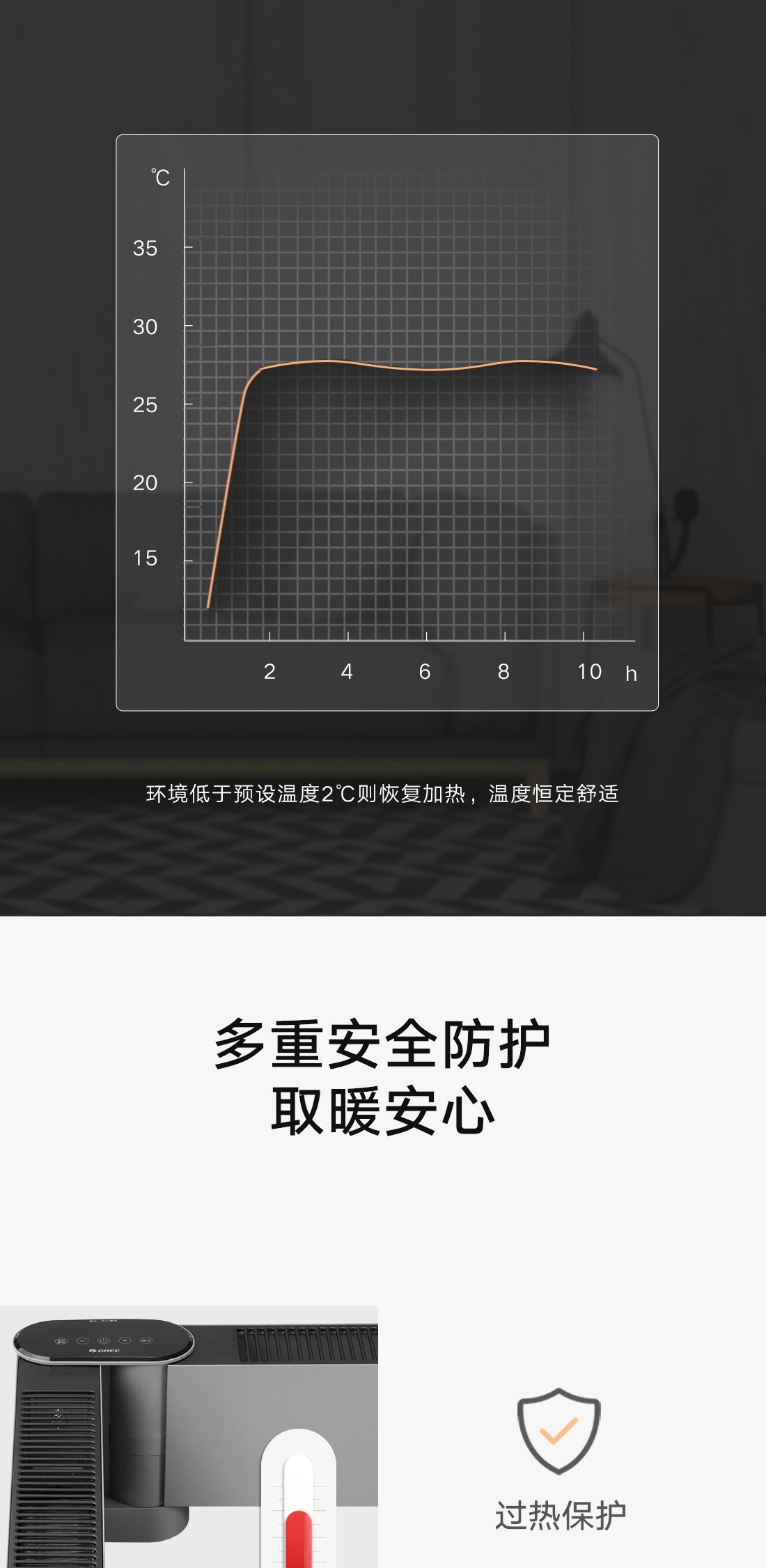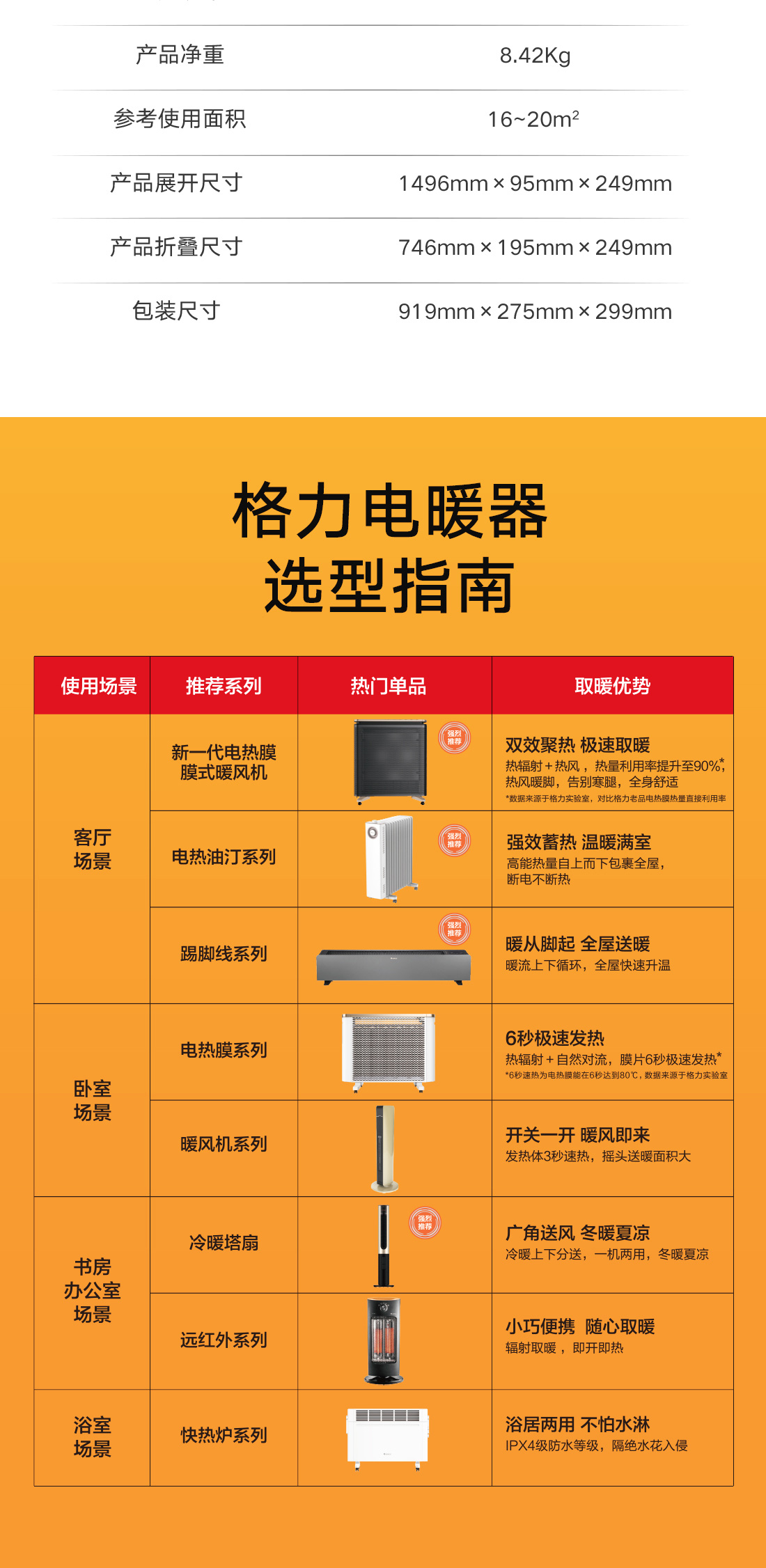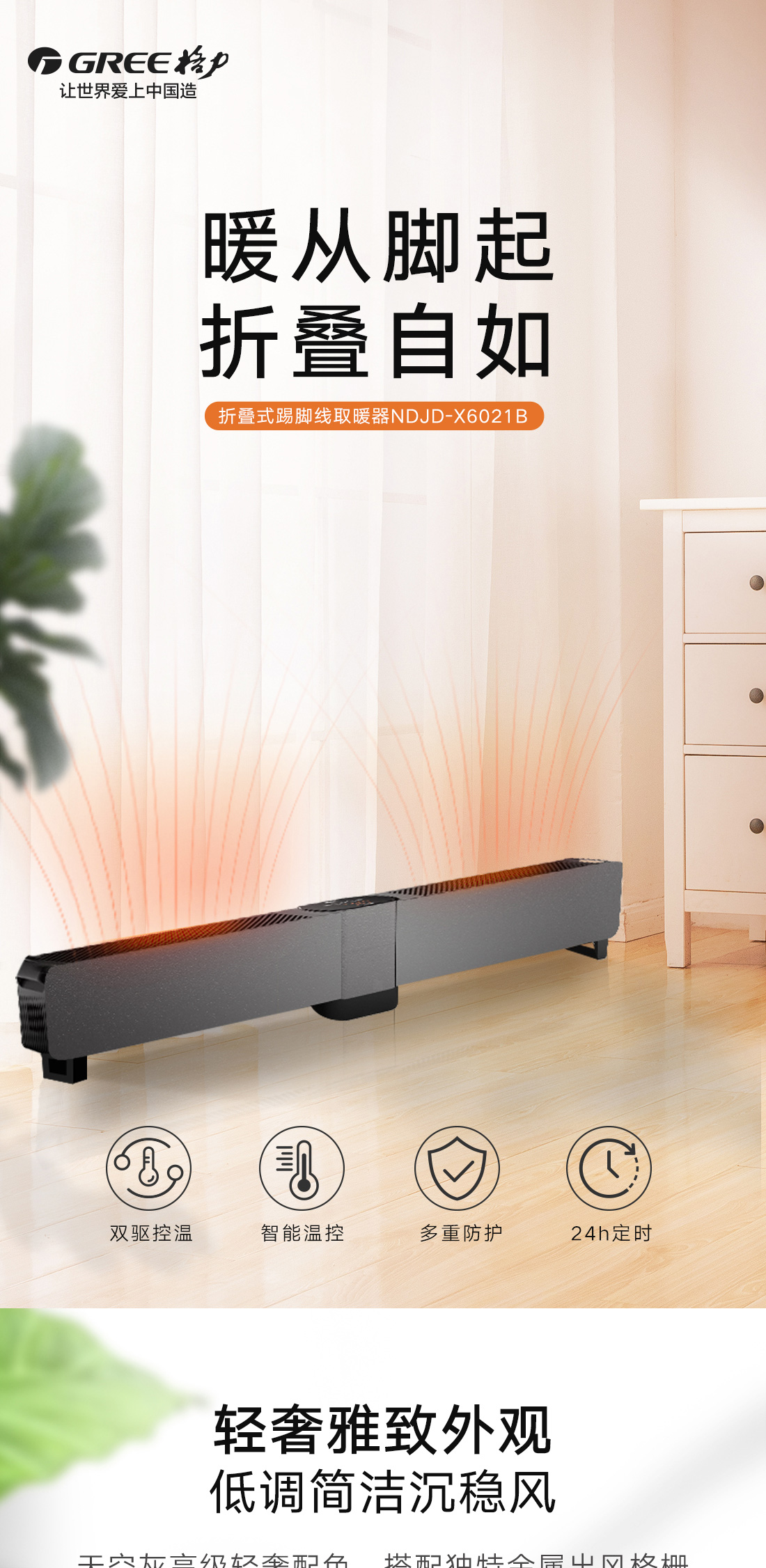 小体积设计,移动轻巧不占地;全屋升温,取暖舒适。