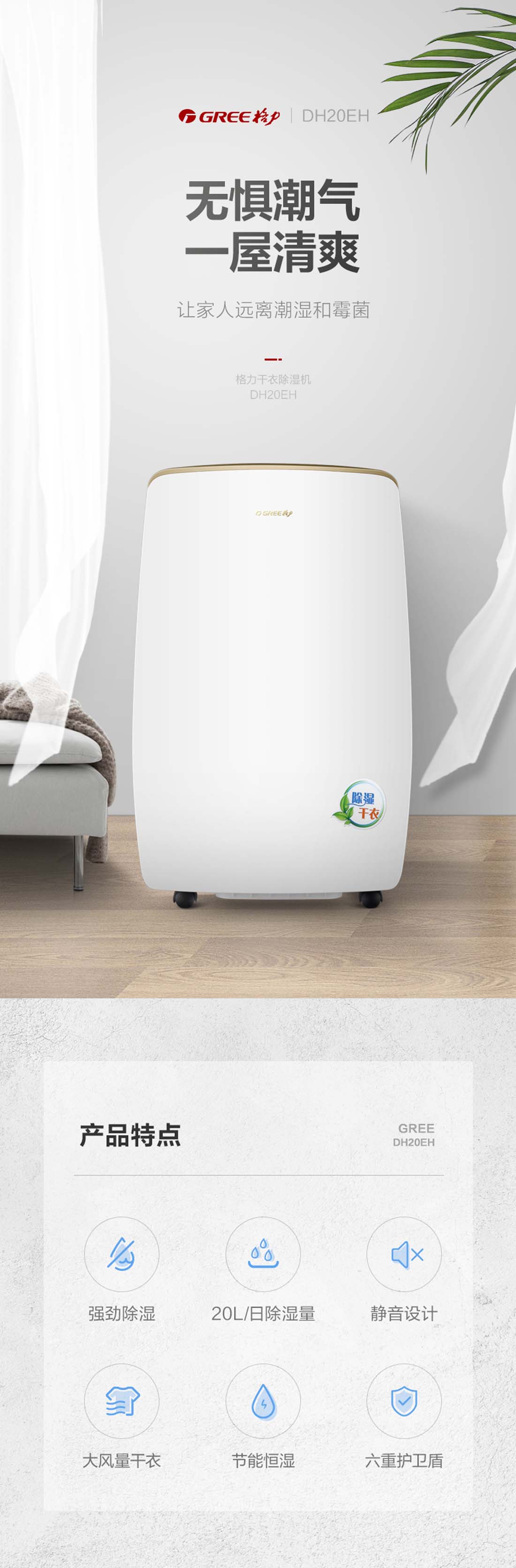 强劲除湿引擎,高效除湿;I.E智能控湿眼,智能除湿;六大安全保护,安心除湿