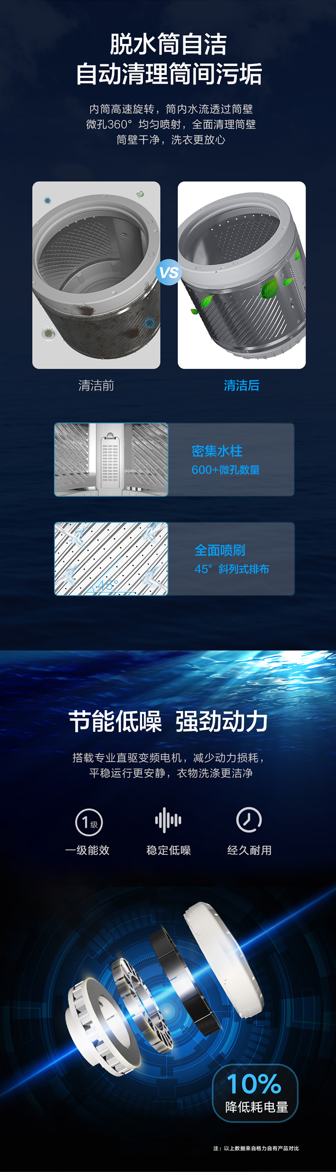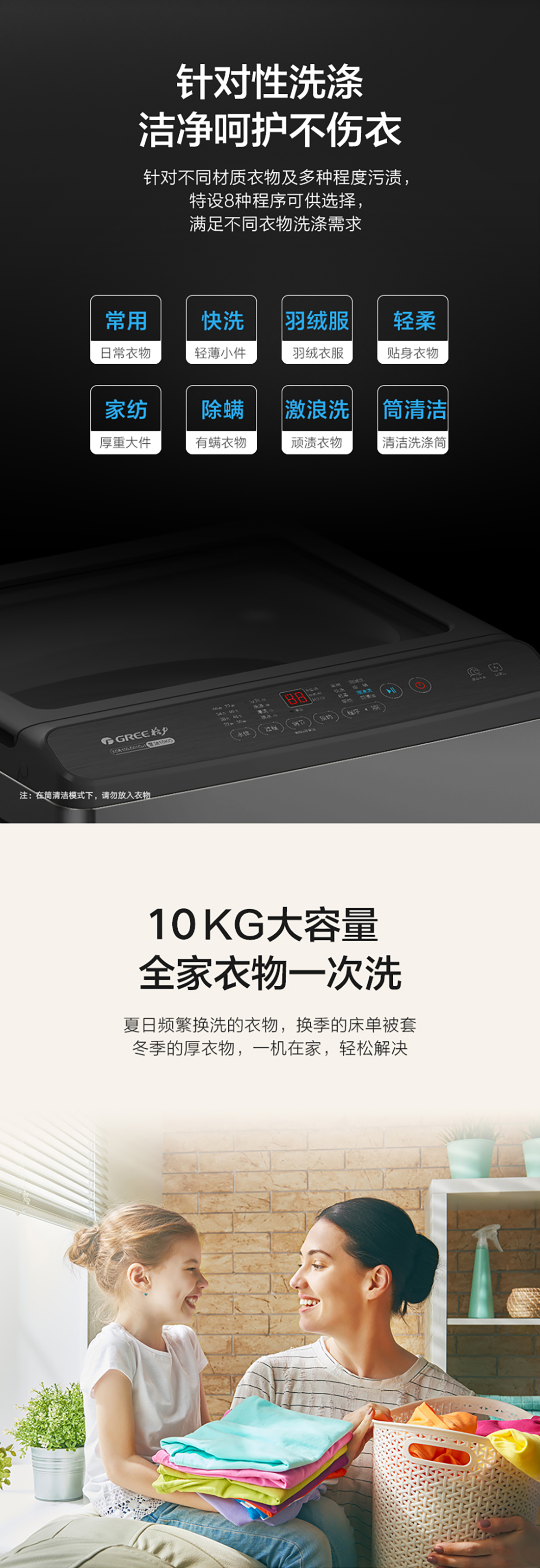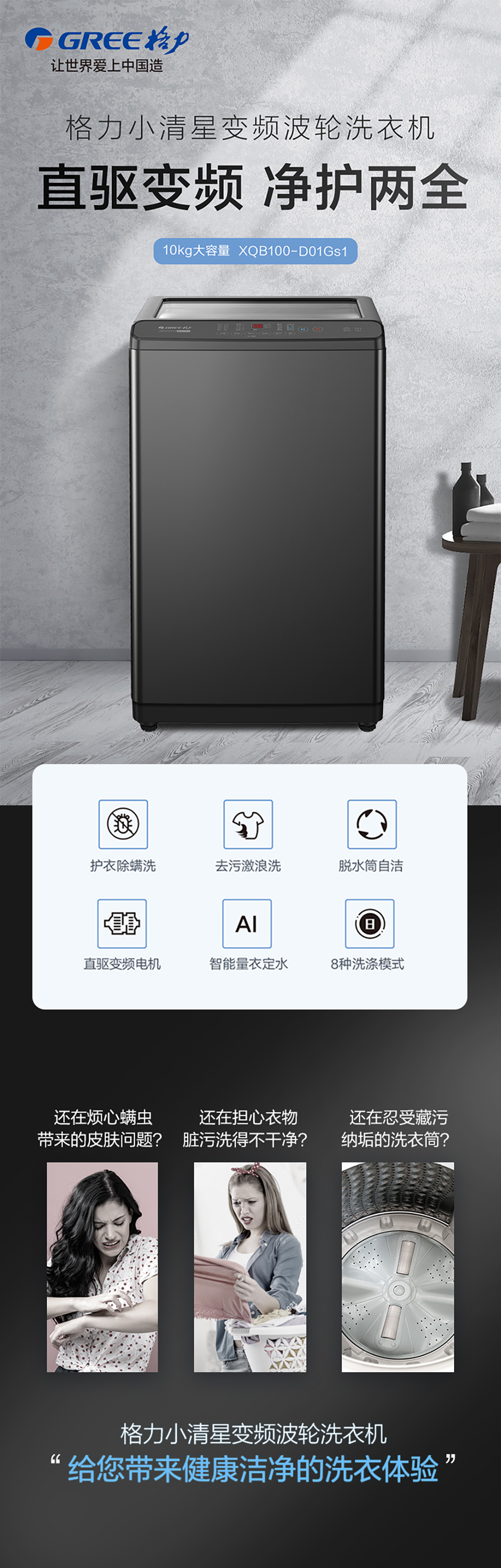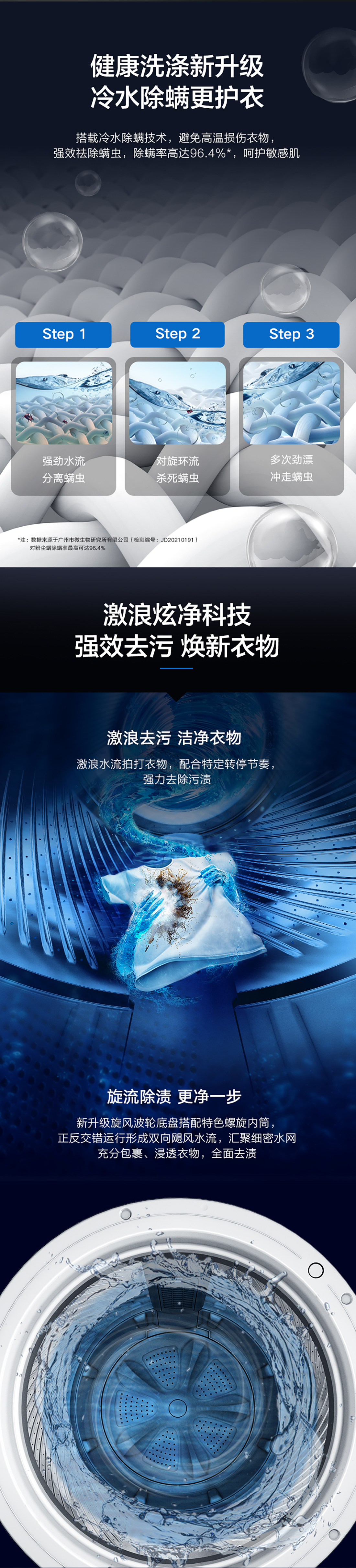 直驱变频电机,护衣除螨洗,激浪去污洗,脱水筒自洁